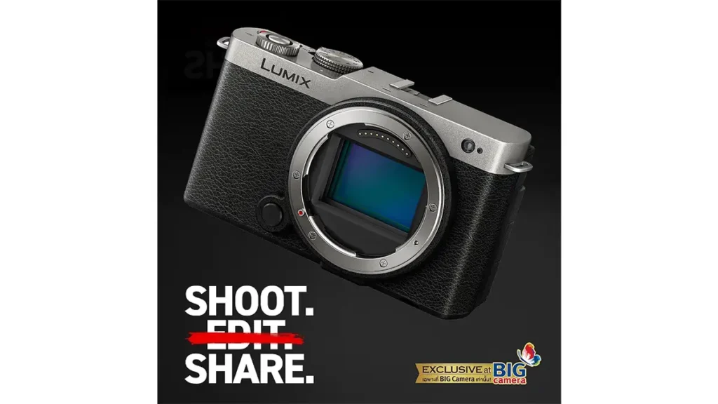 รวมความทันสมัยและดีไซน์สง่างามอย่างลงตัว “Touch of Elegant” ภายใต้แนวคิด Shoot Edit Share ถ่ายทำกันสด ๆ แล้วแชร์ต่อได้เลย ไม่ต้องอีดิท ตอบโจทย์ทั้งการถ่ายภาพและการทำ Content ด้วยขนาดกะทัดรัดและน้ำหนักเพียง 486g แต่มาพร้อมความละเอียดเซ็นเซอร์สูงถึง 24.2 ล้านพิกเซล พร้อมคุณภาพไฟล์ระดับมืออาชีพ บันทึกวิดีโอความละเอียดสูงสุด 6K/30p, 4K/60p และ FHD/120p 4:2:0 10-bit พร้อมฟังก์ชันพิเศษจัดเต็มให้อัพทุกโมเมนต์โพสต์ลงโซเชียลได้ทันที และสำหรับสีพิเศษ Dark Silver ในประเทศไทยจะมีจำหน่ายเฉพาะที่ร้าน BIG CAMERA เท่านั้น