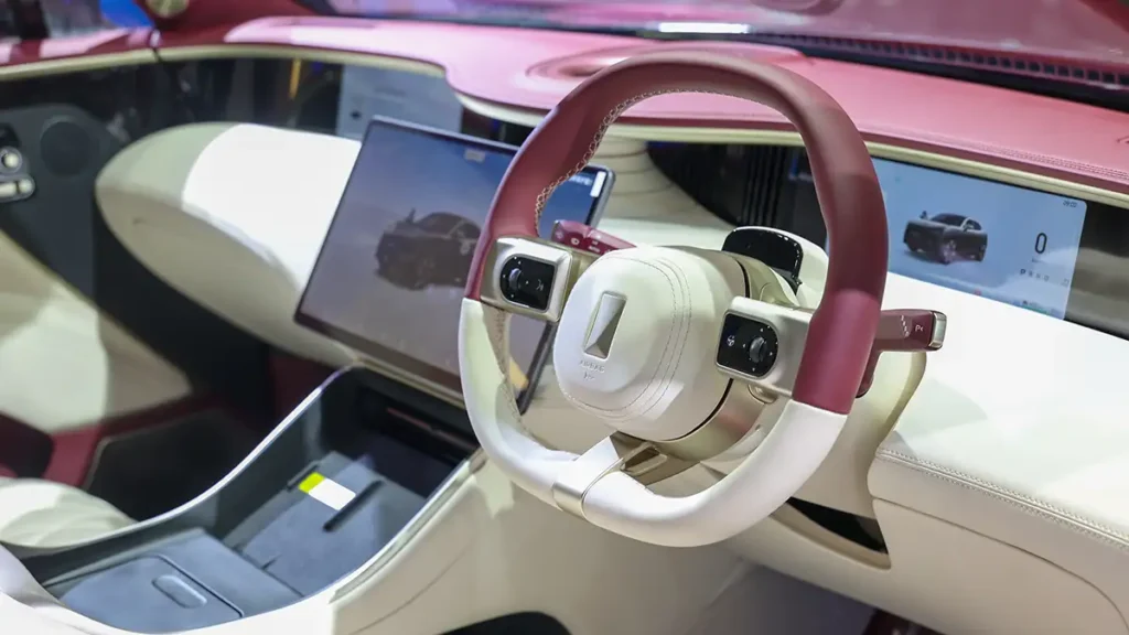 สำหรับ AVATR 07 SUV พลังงานใหม่ที่ผสานความหรูหรา เทคโนโลยี และสมรรถนะในระดับ First Class ตัวรถมีสัดส่วนแบบ Golden Ratio ด้านหน้าดีไซน์เอกลักษณ์ แรงบันดาลใจจาก UFO มาพร้อมสีพรีเมียม 4 เฉด ห้องโดยสาร เป็นสไตล์ Futuristic Embracing Cabin ใช้วัสดุนุ่มระดับพรีเมียมรอบคัน เบาะหนัง Nappa ทูโทน เบาะหน้าปรับไฟฟ้าแบบ Zero Gravity มาพร้อมจอพาโนรามา 35.4 นิ้ว ระดับ 4K และจอกลาง 15.6 นิ้ว ระบบ AVATRLink ช่วยให้ผู้โดยสารตอนหลังก็สั่งงาน ผ่านสมาร์ทดีไวซ์ได้