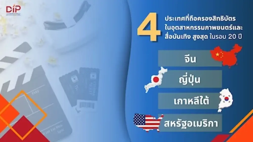 ส่องเทรนด์สิทธิบัตร อุตสาหกรรมภาพยนตร์และสื่อบันเทิง ในรอบ 20 ปี กรมทรัพย์สินทางปัญญา ชี้โอกาสไทยพลิกเกม จากผู้บริโภคคอนเทนต์ สู่ผู้สร้างนวัตกรรมระดับภูมิภาค