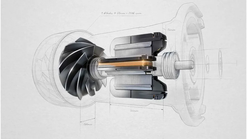 มอเตอร์ Dyson Hyperdymium: หมุนได้สูงสุดถึง 110,000 รอบต่อนาที เป็นสุดยอดพลังการดูดของบรรดาหุ่นยนต์ดูดฝุ่น มาพร้อม 10 ใบพัดที่สร้างแรงดูดได้ถึง 100,000 กิโลกรัม ช่วยดักจับฝุ่นด้วยกระแสลม ทำให้หุ่นยนต์ดูดฝุ่นไม่สูญเสียแรงดูดขณะทำความสะอาด