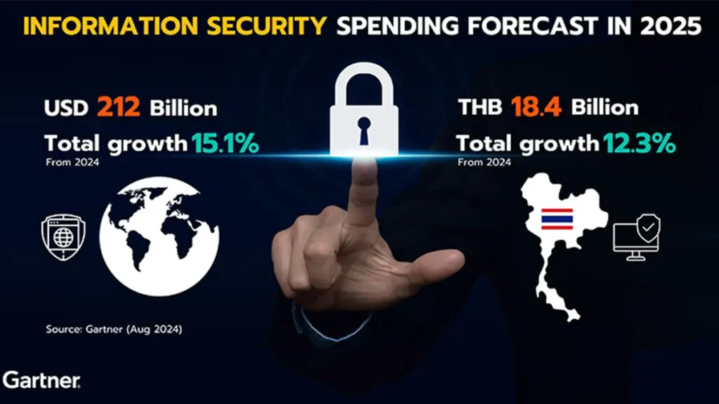 สำหรับประเทศไทย การ์ทเนอร์คาดว่าในปี 2568 ยอดใช้จ่ายด้านความปลอดภัยข้อมูลของผู้ใช้ปลายทางจะมีมูลค่ารวมอยู่ที่ 18,400 ล้านบาท เพิ่มขึ้น 12.3% จากปี 2567 ที่คาดว่าจะมีมูลค่าการใช้จ่ายรวมที่ 16,400 ล้านบาท