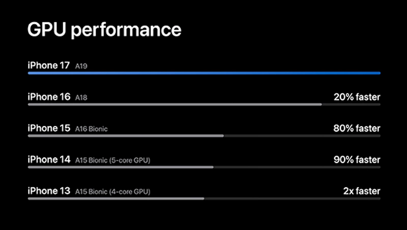 ขุมพลังของ iPhone 17 Apple ใส่ ชิป A19 เทคโนโลยีแบบ 3 นาโนเมตร รุ่นที่ 3 ที่ให้ทั้งประสิทธิภาพ ทั้งประหยัดพลังงาน และเร็วขึ้นแบบก้าวกระโดด มาพร้อมเอนจิ้นการแสดงผลที่ได้รับการอัปเดตมาใหม่, ISP และ Apple Neural Engine ที่ช่วยขับเคลื่อนคุณสมบัติต่างๆ อย่าง Apple Intelligence และรูปแบบภาพถ่ายเจเนอเรชั่นล่าสุด
