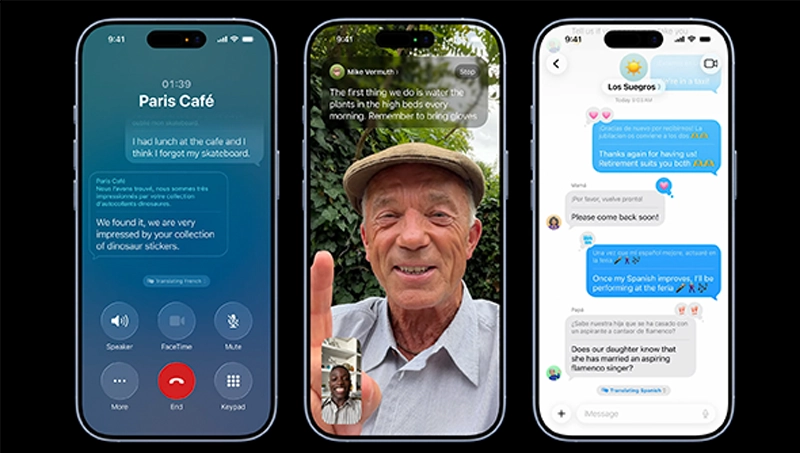 ตอนนี้ Apple Intelligence สามารถแปลข้อความและเสียงให้ผู้ใช้ได้ในทุกที่ด้วยคุณสมบัติการแปลภาษาสด ซึ่งจะช่วยให้ผู้ใช้สื่อสารระหว่างภาษาต่างๆ ในแอปข้อความ, FaceTime และแอปโทรศัพท์ ส่วนการอัปเดตระบบอัจฉริยะด้านภาพทำให้ผู้ใช้สามารถถ่ายภาพหน้าจอ รวมถึงค้นหาหรือทำสิ่งต่างๆ กับสิ่งที่ดูบนหน้าจอ iPhone อยู่ได้อย่างง่ายดาย