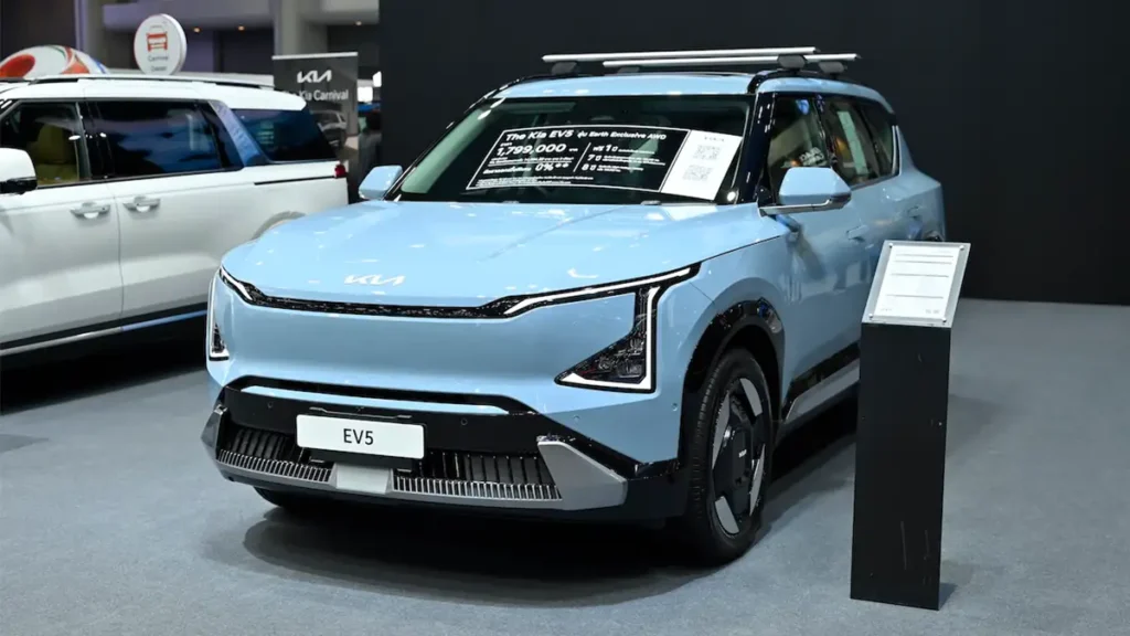 The Kia EV5 – SUV ขนาดกลางไฟฟ้า 100% – โดดเด่นด้วยการตกแต่งภายในที่กว้างขวาง ดีไซน์ทันสมัย ลักษณะการขับขี่แบบไดนามิก และความอเนกประสงค์เต็มรูปแบบ ตอบสนองทุกไลฟ์สไตล์ของครอบครัวยุคใหม่ได้อย่างสมบูรณ์แบบ มีให้เลือก 4 รุ่นย่อย ได้แก่ The Kia EV5 Air, The Kia EV5 Earth Long Range, The Kia EV5 Earth Exclusive AWD และ The Kia EV5 GT-Line AWD