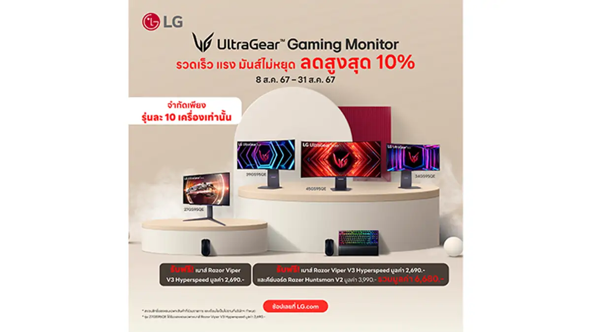 แอลจี เปิดตัว LG UltraGea OLED Gaming Monitor พร้อมกัน 5 รุ่น ชูโมเดลไฮไลต์ จอ 4K OLED สุดพรีเมียมตัวแรกของโลกที่มาพร้อมฟีเจอร์ Dual-Hz มาพร้อมโปรพิเศษแถมฟรีเมาส์และคีย์บอร์ดครบเซ็ต มูลค่า 6,680 บาทเฉพาะเดือนสิงหาคมนี้เท่านั้น