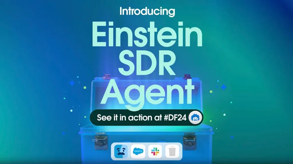 Einstein SDR Agent จะติดต่อลูกค้าที่มีแนวโน้มความสนใจในสินค้า จากข้อมูลที่บริษัทได้รับเข้ามาโดยอัตโนมัติ เพื่อเพิ่มประสิทธิภาพให้กับระบบขั้นตอนกระบวนการการขาย (Pipeline) ตลอด 24 ชั่วโมง ต่างกับแชทบอต (Chatbot) ที่สามารถตอบคำถามตามโปรแกรมที่ตั้งไว้ล่วงหน้าเท่านั้น Einstein SDR Agent สามารถตัดสินใจและจัดลำดับความสำคัญของการดำเนินงานให้สอดคล้องกับผลลัพธ์ที่ต้องการและวิเคราะห์คำถามของลูกค้าเป้าหมาย เพื่อกำหนดสิ่งที่จะต้องทำต่อไปโดยอัตโนมัติ ไม่ว่าจะเป็นการตอบคำถามเกี่ยวกับผลิตภัณฑ์ จัดการกับข้อโต้แย้งหรือการปฏิเสธของลูกค้า หรือการนัดหมายให้ลูกค้าพบกับพนักงาน