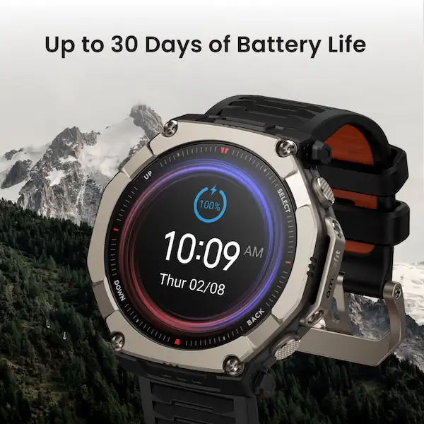 - Amazfit T-Rex Ultra 2 แบตเตอรี่ใช้งานในโหมดสมาร์ตวอตช์ได้นานสูงสุด 30 วัน ใช้งาน GPS ต่อเนื่องได้กว่า 50 ชั่วโมง