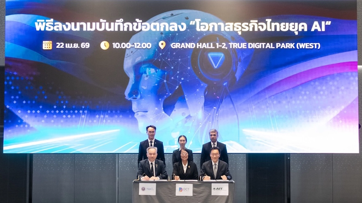 ก้าวสำหรับ AI ไทย เกิดปรากฏการณ์ครั้งสำคัญของวงการเทคโนโลยีไทย เมื่อ 3 ยักษ์ใหญ่ด้านดิจิทัลและวิจัยอย่าง สภาดิจิทัลเพื่อเศรษฐกิจและสังคมแห่งประเทศไทย (DCT), สำนักงานพัฒนาวิทยาศาสตร์และเทคโนโลยีแห่งชาติ (สวทช.) และ สถาบันเทคโนโลยีแห่งเอเชีย (AIT) ร่วมลงนามบันทึกความเข้าใจ (MOU) ภายใต้โปรเจกต์ “โอกาสธุรกิจไทยยุค AI”