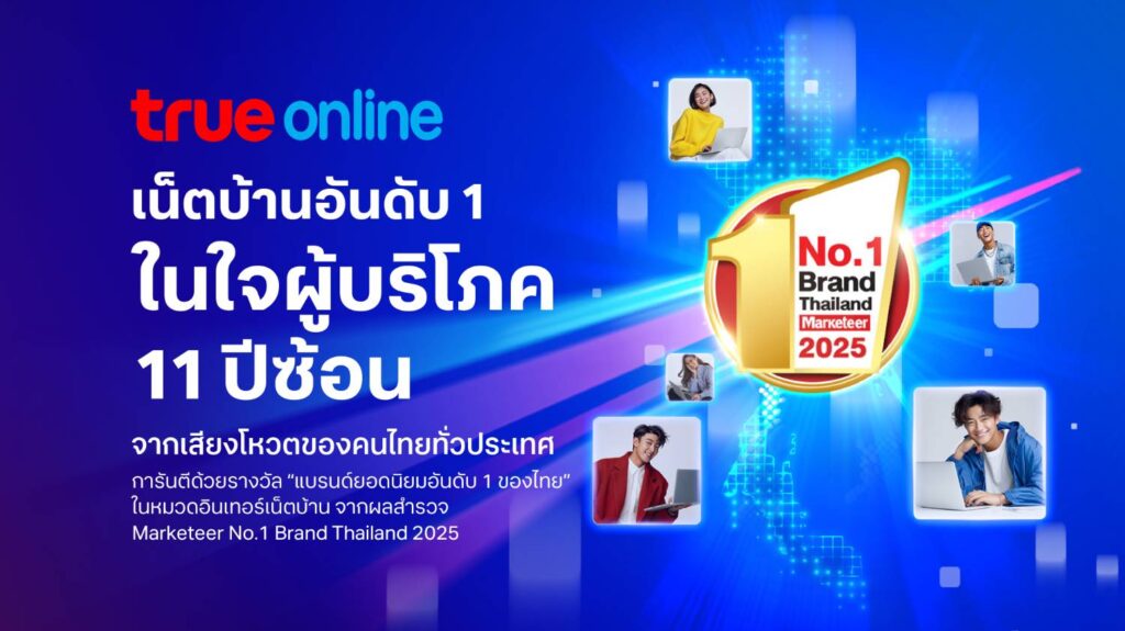ทรูออนไลน์ ยังแข็งแกร่ง คว้ารางวัล “No.1 Brand Thailand 2025” สาขาอินเทอร์เน็ตบ้าน จากงานประกาศผลและมอบรางวัล Marketeer No.1 Brand Thailand 2025